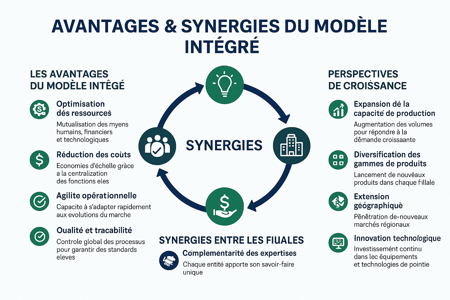 Le modèle intégré d’Ashia Group repose sur une vision stratégique qui favorise la croissance durable et la création de valeur. Il combine des synergies entre nos filiales pour maximiser l’efficacité, l’innovation et la compétitivité.